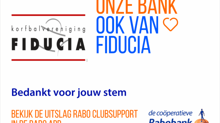 Namens KV Fiducia hebben Noah en Bente de cheque in ontvangst mogen nemen van de Rabobank clubsupport actie. We kregen als club een heel