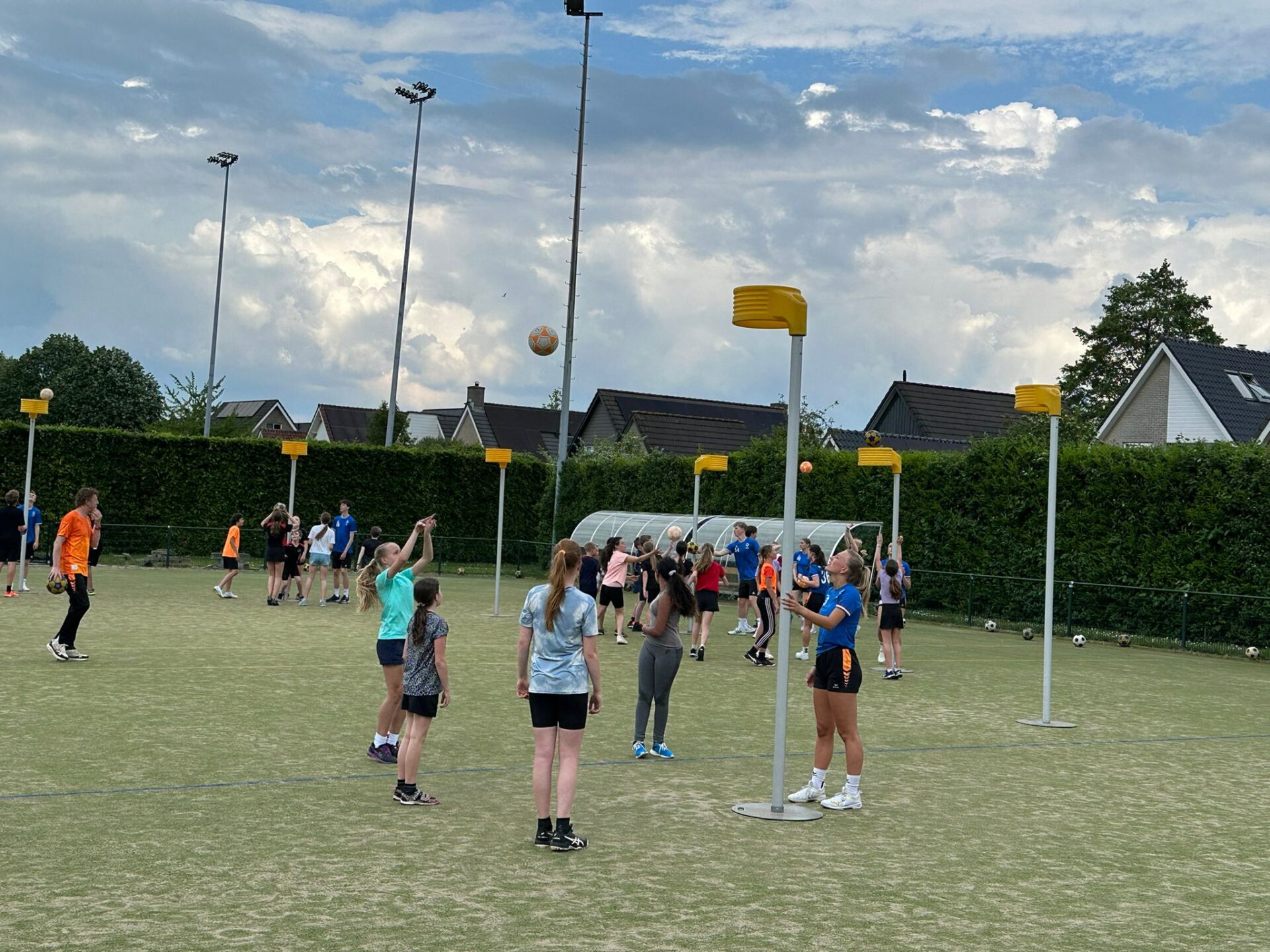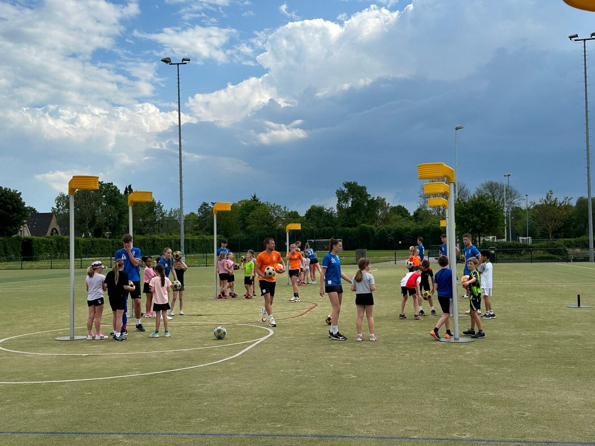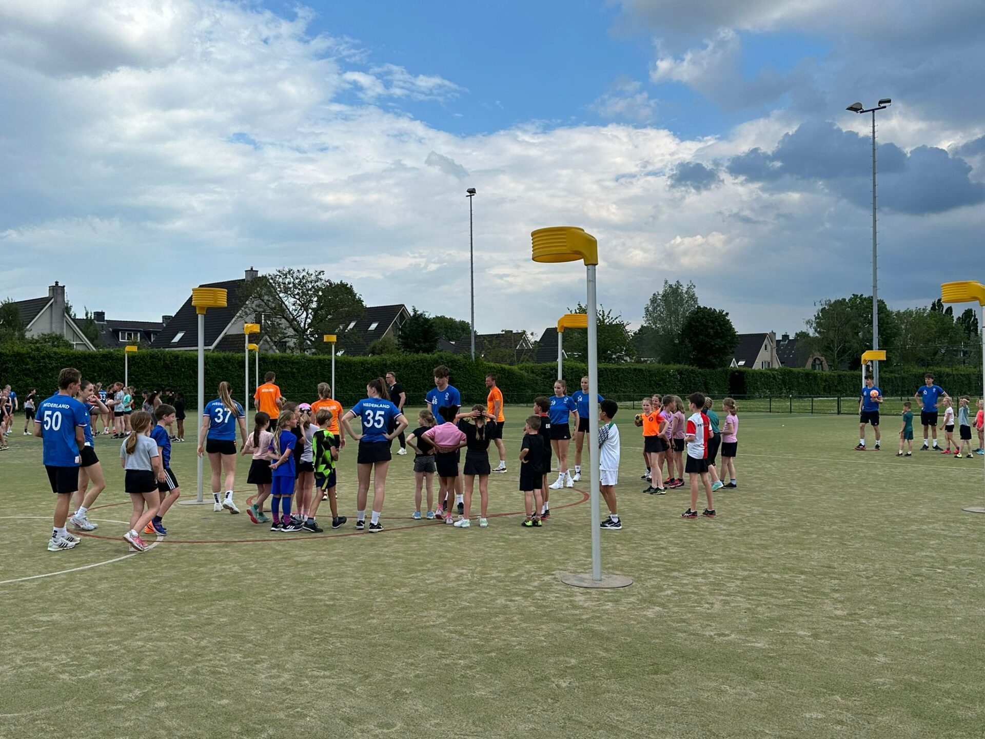 Het weer was ons goed gezind en rond 16.15 uur stonden nagenoeg alle jeugdleden op het veld met 20 enthousiaste spelers van Nederland U 17 en 5 man begeleiding voor een leuke en gezellige clinic. Eerst even de balvaardigheid testen en daarna tijd voor lekker schieten en partijen.